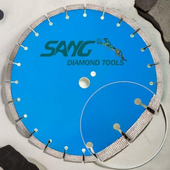 Hoja de sierra diamantada para cortar hormigón armado.