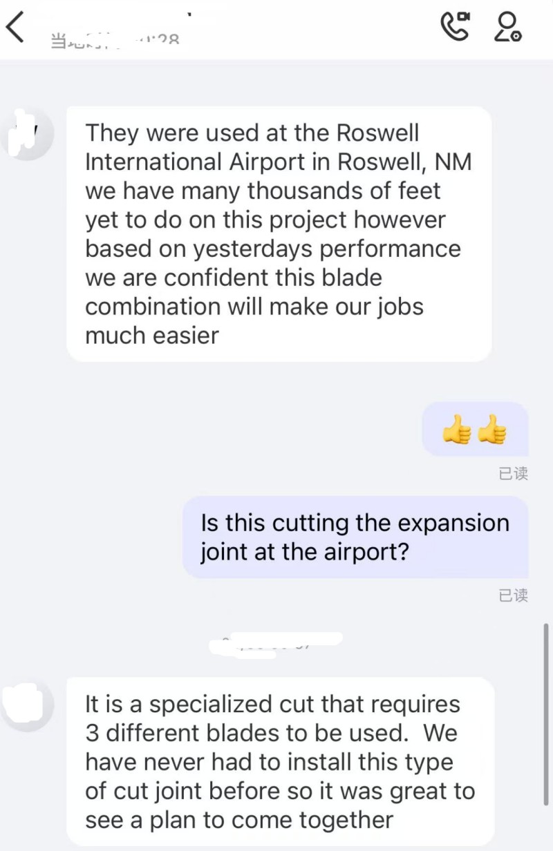 Recientemente, proporcionamos una sierra ensanchadora de juntas de concreto personalizada para un proyecto de corte de concreto a gran escala en el Aeropuerto Internacional de Roswell, Nuevo México. El cliente, un contratista de construcción profesional, reportó excelentes resultados durante la fase inicial del proyecto, destacando el rendimiento superior de nuestra combinación de cuchillas en una tarea de corte altamente especializada.